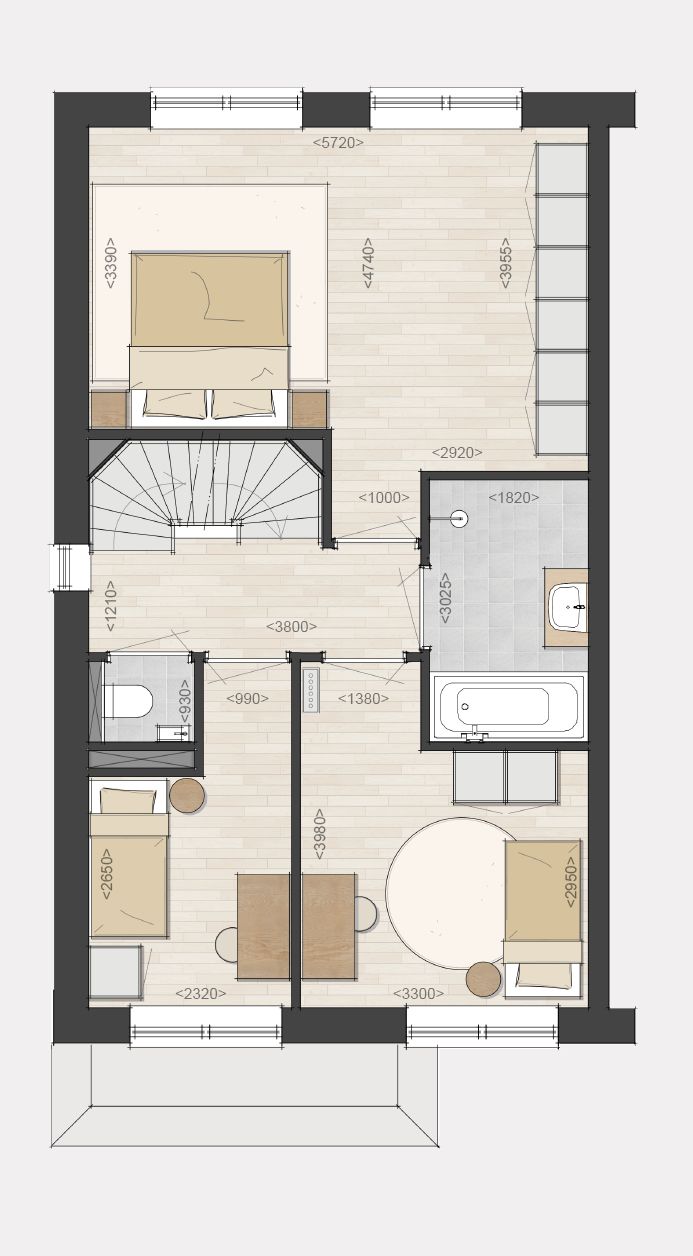 Op de eerste verdieping heeft de woning drie slaapkamers, een ruime badkamer en apart toilet. Op de twee verdieping een vrij indeelbare zolder met techniek ruimte en aansluiting voor wasmachine en droger.